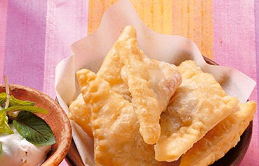 Gefüllte Teigtaschen mit Blumenkohl Zutaten 350 g Weizenmehl + Mehl für die Arbeitsfläche 1 1/2 EL Ghee oder Butterschmalz Salz 500 g Blumenkohl 2 Tomaten 1 Stück frischer Ingwer (ca. 4 cm) 2 EL Ghee oder Butterschmalz 150 g tiefgekühlte Erbsen Salz 1 1/2 TL Garam Masala (ind [...]