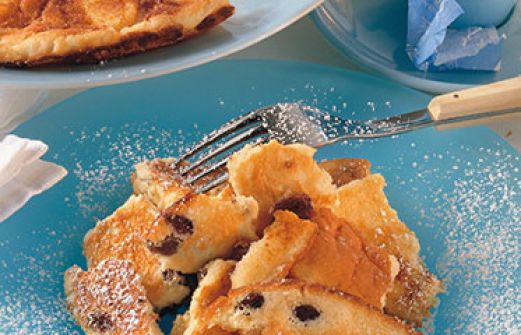 Kaiserschmarren Zutaten 50 g Rosinen 50 ml Apfelsaft 1 EL Zitronensaft 50 g Butter + 1 EL Butter 6 Eier 300 g Mehl Salz 2 Päckchen Vanillezucker 450 ml Milch 2 EL Butterschmalz 2 EL Puderzucker 50 g Rosinen , 50 ml Apfelsaft , 1 EL Zitronensaft , [...]