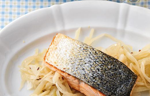 Lachs mit Sektkraut Zutaten 600 g Weißkohl 300 ml Sekt 3 TL Zucker Salz 1 Zwiebel 4 EL Butter 1 TL Kümmel 1 Kartoffel 1 Apfel (z.B. Golden Delicious) 4 Lachsfilets (à 150 g, mit Haut) frisch gemahlener Pfeffer Saft von ½ Zitrone 1 EL Speisestärke 1 EL Öl 600 [...]