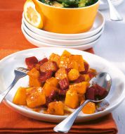 Lamm-Kürbis-Gulasch Zutaten 4 Zwiebeln 3 Zehen Knoblauch 600 g Lammfleisch (Keule) 3 EL Olivenöl Salz Pfeffer 1 EL Tomatenmark 2 Lorbeerblätter 1 – 2 TL rosenscharfes Paprikapulver 1 Dose stückige Tomaten 300 – 400 ml Gemüsebrühe 750 g Hokkaidokürbis (oder Butternusskü [...]