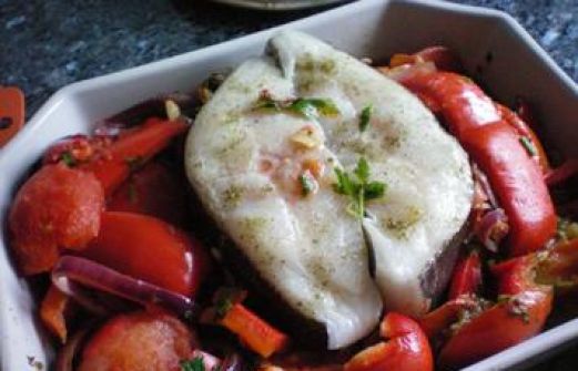 Zutaten für Personen Rezept mit Bild: Fisch: Heilbutt auf einem Gemüsebett Bild einstellen 2 Stück Heilbutt frisch 4 Tomaten 2 Parikaschoten, ich hatte rote, Zu den Tomaten sehen gelbe auch recht nett au [...]