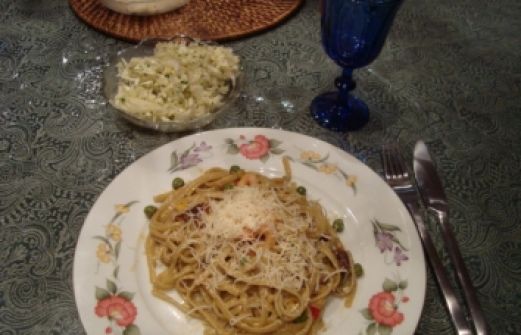 Zutaten für Personen Rezept mit Bild: *danes Spezial - Spaghetti a la Alexandra Bild einstellen 250 gr. Spaghetti 1 kl. Zwiebel gewürfelt 200 gr. Erbsen grün tiefgefroren oder 200 gr. Mischgemüse tiefgef [...]