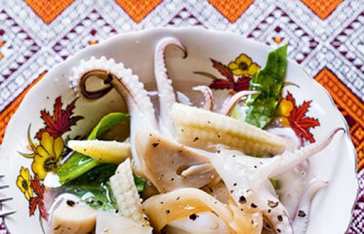 Reisnudeln in gebundener Sauce mit Tintenfisch (Rad Nah Pla Mük) Zutaten 300 g frische Tintenfischringe (im Ganzen oder Ringe) 1 EL Tapiokamehl 2 EL Austernsauce 2 TL Zucker 1 kg breite frische Thai-Reisnudeln oder 500 g getrocknete 1 EL helle Sojasauce 1 TL dunkle Sojasauce 3 EL [...]