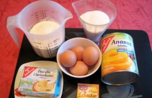 Zutaten für Personen Rezept mit Bild: Rührkuchen mit Ananas Bild einstellen 250 gr. Butter zimmerwarm 250 gr. Zucker weiß 4 Eier Freiland 400 gr. Mehl gesiebt 1 Pk. Backpulver 1 Dose Ananas Ko [...]