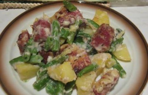 Zutaten für Personen Rezept mit Bild: Kassler-Bohnen-Kartoffeln-Auflauf Bild einstellen 400 g Kasseler Kamm roh geräuchert 250 g Kartoffeln geschält frisch 200 g Brechbohnen 1 EL Mehl 100 ml Milch 100 m [...]