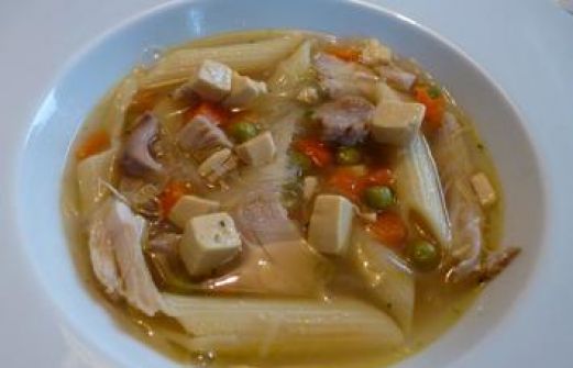 Zutaten für Personen Rezept mit Bild: Hühnersuppe mit Eierstich und Gemüse Bild einstellen 4 Stück Hähnchenschenkel 2 Liter Gemüsebrühe eigene Herstellung 1 Stück Gemüsezwiebel halbiert 4 Stück Pfefferkörner [...]