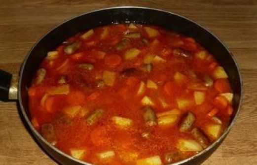 Zutaten für Personen Bild einstellen 1 Packung Original Nürnberger Rostbratwürste 2 El Öl 500 Gramm Kartoffeln 250 Gramm Karotten 2 Zwiebeln 2 El Tomatenmark 1 El Mehl 750 Gramm Gemüsebrühe Salz, Pfeffer [...]
