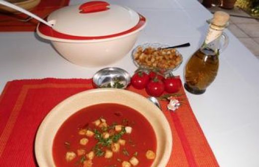 Zutaten für Personen Rezept mit Bild: Kalte Tomatensuppe Bild einstellen 1 Schalotte 1 Knoblauchzehe 2 EL Olivenöl extra vergine 5 Partytomaten 1 Dose Pizzatomaten - 425g Salz Pfeffer aus der [...]