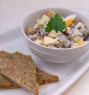 Zutaten für Personen Rezept mit Bild: Salat vom Sahnehering ... Bild einstellen 1 Portion Sahneheringe 1 kleine Zwiebel 2 Gewürzgurken Sauerkonserve 1 Esslöffel Gewürzgurkensud 1 Stückchen Apfel Breab [...]