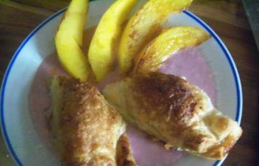 Zutaten für Personen Rezept mit Bild: Dessert - Bananen im Blätterteigmantel Bild einstellen 2 Bananen frisch 1 Rolle Blätterteig aus der Kühltruhe Honig flüssig Butter flüssig Zucker braun 5 EL S [...]