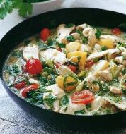 Zuckerhut-Röllchen mit Hähnchen Zutaten 1 kleiner Zuckerhutsalat (ersatzweise junger Chinakohl) Salz 100 g Hähnchenbrustfilet 2 EL blanchierte Mandeln 1 EL gehackte Petersilie 1 Ei (Größe M) 1 EL Semmelbrösel Pfeffer Muskatnuss 2 TL Butter 100 ml Hühnerbrühe 50 g Sahne [...]