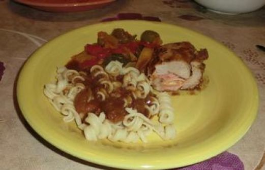 Zutaten für Personen Rezept mit Bild: Gefülltes Schweinefilet mit buntem Paprikagemüse Bild einstellen 1 Schweinefilet ca. 500 g 1 Zwiebel 3 Scheiben Kochschinken 2 Scheiben Müritzer Kä [...]