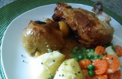 Zutaten für Personen Rezept mit Bild: Fruchtiges Hähnchen Bild einstellen Hähnchen 1 Hähnchen Salz Pfeffer Paprika Gewürz 2 Mandarinen 4 Äpfel 2 Esslöffel Rosinen Soße 250 ml G [...]