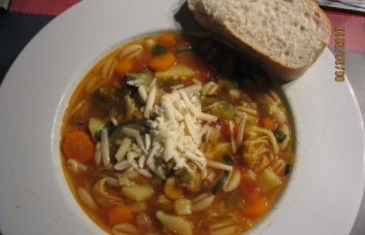 Zutaten für Personen Rezept mit Bild: Minestrone Vegetarisch Bild einstellen 2 Zwiebeln 2 Knoblauchzehen 200 gr. Möhren 3 Stangen Staudensellerie 250 gr. Kartoffeln 1 Zucchini 1 [...]