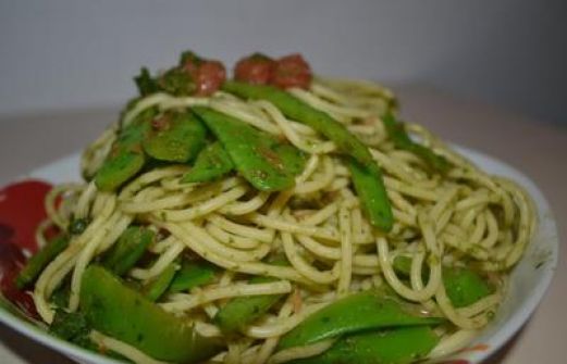 Zutaten für Personen Bild einstellen 300 gr Spaghetti Salz 0.25 Bund Koriander 1 Bund Basilikum 2 Stück Knoblauchzehen 1 Stück Chili rot 50 gr. Ingwer eingelegt 150 ml Gemüsebrühe 200 gr. Zuckerschoten 3 St [...]