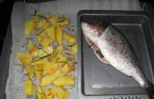 Zutaten für Personen Rezept mit Bild: Gebratene Dorade mit Pommes Wedges Bild einstellen 1 Stk. küchenfertige frische Dorade Salz, Pfeffer, Paprika 1 Zweig Rosmarin, 2 Stränge Thymian, 1 El Olivenöl, 2 Schb. Zit [...]