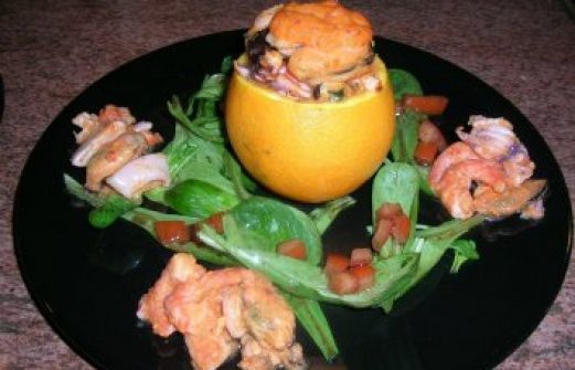 Zutaten für Personen Rezept mit Bild: Meeresfrüchte in Orangen geröstet Bild einstellen 4 Stück Navel Orangen 1 Bund Lauchzwiebeln frisch Salz 200 gr Meeresfrüchte je nach Geschmack 4 Stück große geschä [...]
