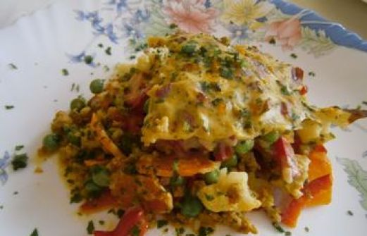 Zutaten für Personen Rezept mit Bild: Auflauf mit Hackfleisch, Gemüse, und Schmelzkäse Bild einstellen 1 Blumenkohl frisch 250 g Möhren 1 Zwiebel frisch 100 g Erbsen TK 1 EL Butterschmalz 400 g Hackfle [...]