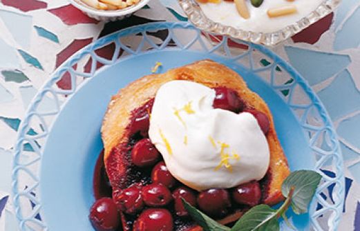 Brot mit Sauerkirschen Zutaten 6 Scheiben Kastenweißbrot, 2 cm dick 50 g Butter 1 Glas entsteinte, gesüßte Sauerkirschen (680 g Inhalt) 4 EL Zucker Mark von ½ Vanilleschote 6 EL Mascarpone 1 Msp. fein abgeriebene Schale von einer unbehandelten Zitrone frische Minzeblättchen zum [...]