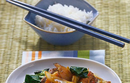 Wok-Ente mit Mangold Zutaten 2 Entenbrustfilets (à ca. 220 g) 2 Stängel Zitronengras 1 Stück frischer Ingwer (ca. 2 cm) 4 EL Sojasauce 3 EL Sherry (ersatzweise Brühe) 1/2 TL Sambal oelek 1 Knoblauchzehe 4 große Möhren 1 Gemüsezwiebel 500 g Mangold 1 TL Speisestärke 1/8 l H [...]