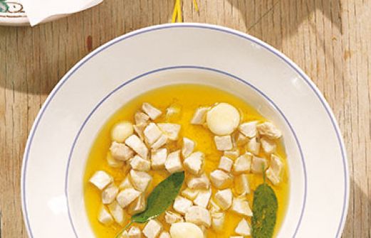Eingelegtes Kaninchen Zutaten 4 l kräftige Gemüsebrühe 1 küchenfertiges Kaninchen (1,8 kg) 1 Knoblauchknolle etwa ¾ l Olivenöl extra vergine etwa 20 Salbeiblätter Salz Pfeffer, frisch gemahlen Saft von 1 Zitrone 4 l kräftige Gemüsebrühe , 1 küchenfertiges Kani [...]