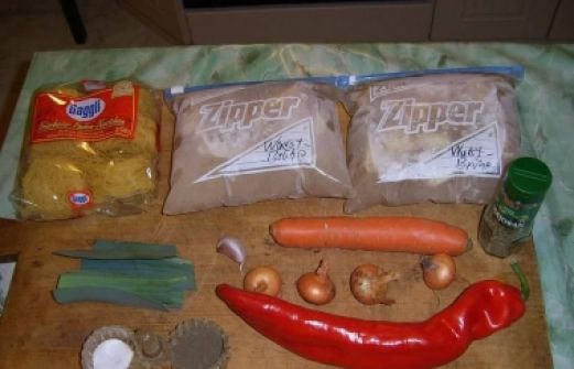 Zutaten für Personen Rezept mit Bild: Wurstbrühsuppe mit Fadennudeln Bild einstellen 2 Liter Wurstbrühe 100 g Fadennudeln 1 gr. Karotte 1 gr. roter Spitzpaprika 50 g Lauchstangenspitzen 4 mt. Zwi [...]