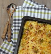 Zutaten für Personen Bild einstellen 2 Tomaten 1 Paprika rot 1 Paprika grün 1 kleine Zwiebel 250 g Hackfleisch 1 EL Butter 350 g Rigatoni 100 ml Weißwein 2 EL Tomatenmark 2 EL Ajvar 300 ml Milch 1 &f [...]