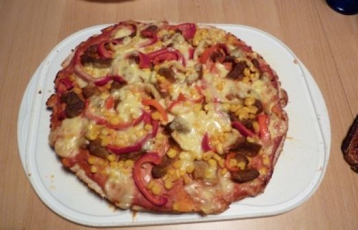 Zutaten für Personen Rezept mit Bild: Fl/Schwein: Fladenpizza Bild einstellen 1 Fladenbrot 500 ml Tomaten passiert 200 g Frischkäsezubereitung Magerstufe Salz Pfeffer Oregano Thymian 600 g [...]