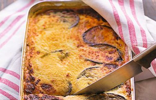 Moussaka Zutaten 1 kg Auberginen Salz 10 EL Olivenöl 2 größere Zwiebeln 4 Zehen Knoblauch 1 Dose geschälte Tomaten (400 g) 1 TL getrockneter Oregano 400 g gemischtes Hackfleisch 1 EL Tomatenmark ½ TL Zimtpulver Pfeffer 40 g Butter 30 g Mehl 600 ml Milch 600 g meh [...]