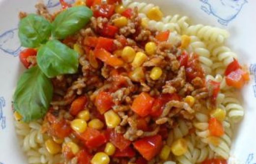 Zutaten für Personen Rezept mit Bild: Fusilli mit pikanter Hackfleischsoße Bild einstellen Salz, schwarzer Pfeffer 1 Zwiebel 2 kleine Paprikaschoten 1 Knoblauchzehe 1 Esslöffel Öl 400 g Hac [...]