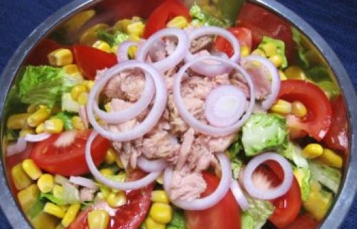 Zutaten für Personen Rezept mit Bild: Bunter Salat als Appetit-Anreger Bild einstellen 2 Römersalat-Herzen 1 kl. Dose Mais - 140g - abgetropft 2 Tomaten 1 Zwiebel rot 1 kl. Dose Thunfisch Konserve in Öl [...]