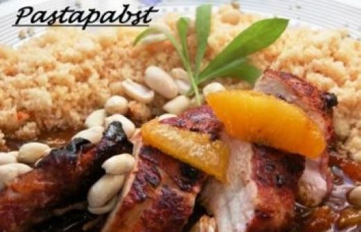 Zutaten für Personen Rezept mit Bild: Orangen-Erdnusshähnchen mit Couscous Bild einstellen 3 Hähnchenbrustfilet 100 g Bacon 4 EL Thymian-Lavendel-Öl 1 EL Honig 1 TL Mojo Picon Zitronensalz Oran [...]