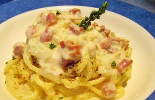 Zutaten für Personen Rezept mit Bild: Spaghetti nach "Carbonara-Art" Bild einstellen 250 g Spaghetti 2 ½ Liter Wasser kochend 2 Teelöffel Salz Für die Soße: 20 g Markenbutter 50 g Schinken [...]