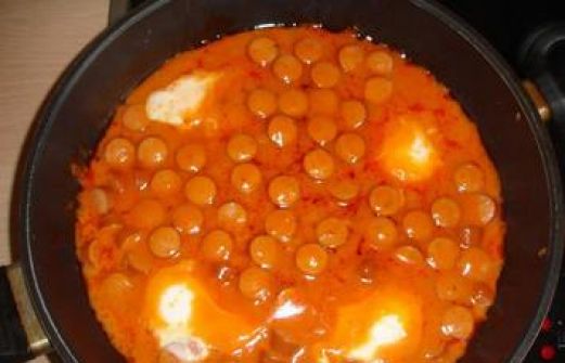 Zutaten für Personen Bild einstellen 1 Glas Räucherwürstchen z.B. Böklunder 1 mittl. Gemüsezwiebel 3 mittl. Knoblauchzehen 1 Karton Tomatensauce 350-400ml 0.5 Karton Sahne 250ml 1 st Brühwürfel 4 frische Eier 1 Tass [...]