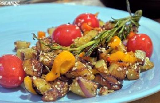 Zutaten für Personen Rezept mit Bild: Kartoffel-Gemüsepfanne mit Sesam Bild einstellen 600 g Kartoffeln 200 g Sweet-Paprika 1 rote Zwiebel 2 Knoblauchzehen, fein gerieben 150 g Datteltomaten 2 Z [...]