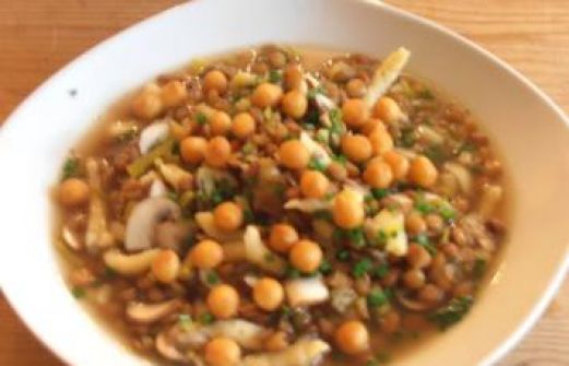 Zutaten für Personen Bild einstellen 1 kleine Stange Lauch/Porree 200 g braune Champignons 1 Dose Linsen mit Suppengrün, 800 g 400 g Spätzle aus dem Kühlregal oder selbst hergestellt 1 Bund Schnittlauch 4 EL Backerbsen, Fe [...]