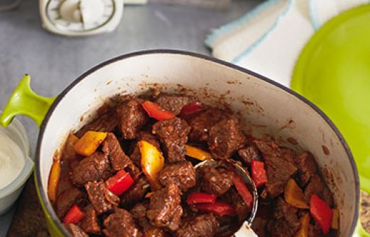 Rindergulasch Zutaten 500 g Zwiebeln (z. B. 2 Gemüsezwiebeln) je 1 kleine gelbe und rote Paprikaschote 2 EL Butterschmalz 1-2 Prisen brauner Zucker 500 g Rindergulasch (Schulter oder Hesse; in 2 cm große Würfel geschnitten) Salz schwarzer Pfeffer 1 EL Tomatenmark 1-2 EL edels [...]