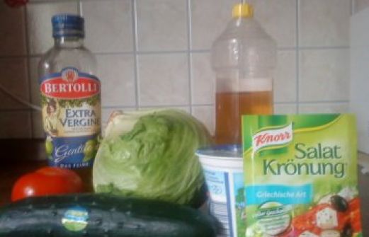 Zutaten für Personen Rezept mit Bild: Griechischer Salat etwas anders Bild einstellen kleiner Eisbergsalatfrisch Tomate gewürfelt Salatgurke Joghurt natur Essig, Olivenöl Schafskäse [...]