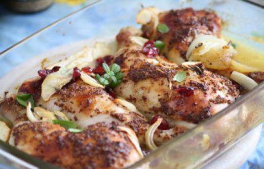 Zutaten für Personen Rezept mit Bild: Hühnchen mit Cranberries Bild einstellen 400 g Schalotten 1 großer säuerlicher Apfel 2 TL körniger Senf 1 EL Ahornsirup oder Honig 2 TL gemahlener Ingwer Prise ge [...]