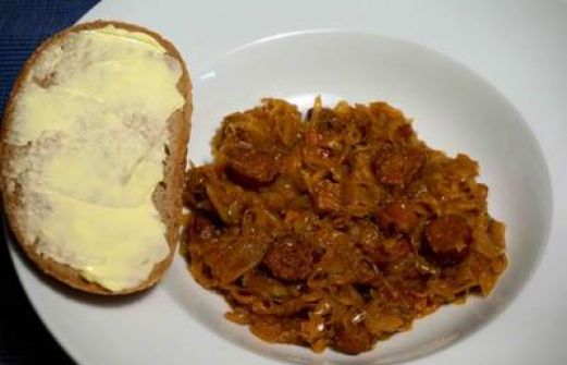 Zutaten für Personen Rezept mit Bild: Bigos Bild einstellen 1 Dose Sauerkraut 800 g Weißkohl, in feinen Streifen 1 Stück Zwiebel gewürfelt 1500 ml Wasser 250 g Kassler 250 g Schinkenspeck 250 g Kra [...]