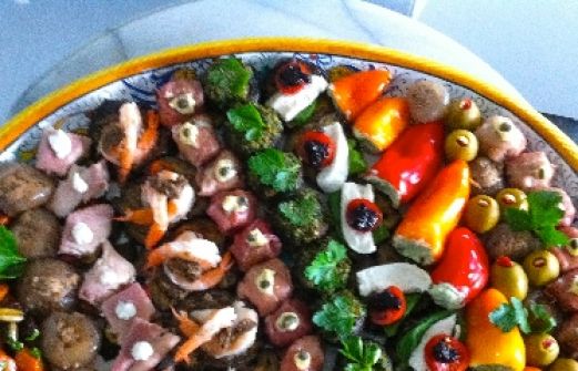 Antipasti zum Frühlingsanfang Zutaten 3 Karotten Pinienkerne Rosinen Marsala 8 Zwiebeln (aus dem Glas) 1 Zucchino 1 geräuchertes Forellenfilet 2 Auberginen Auberginenkaviar 12 Garnelen 250 g Hähnchenfilet 170 g Parmaschinken Mayonnaise + Kapern 10 grosse Champignons Pete [...]