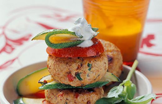Kalbfleisch-Tofu-Burger mit getrockneten Tomaten Zutaten 150 g Tofu zum Braten (Reformhaus oder Asiamarkt) 1 Stange Frühlingszwiebel (20 g) 4 getrocknete Tomaten in Öl (30 g) 1 kleine Knoblauchzehe 1-2 kleine Salbeiblätter, gewaschen und trocken getupft 150 g Kalbshackfleisch 1 [...]