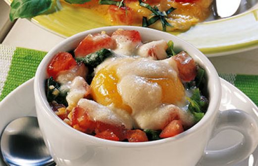 Florentiner Tasseneier Zutaten 250 g frischer Blattspinat 1 Knoblauchzehe 2 EL Olivenöl Salz Pfeffer 2 Tomaten 6 Eier 150 g Sahne 3 EL frisch geriebener Pecorino (ersatzweise Parmesan) Muskatnuss, frisch gerieben Olivenöl für die Tassen 250 g frischer Blattsp [...]