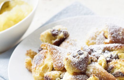 Kaiserschmarrn mit Rumrosinen Zutaten 2 EL Rosinen 4 cl Rum (auch fein: Apfelsaft) 3 Eier (M) 150 ml Milch oder Sahne 85 g Mehl 1 Prise Salz 1 EL Vanillezucker 75 g Zucker 75 g Butter Puderzucker zum Bestäuben 2 EL Rosinen , 4 cl Rum (auch fein: Apfelsaft) , [...]