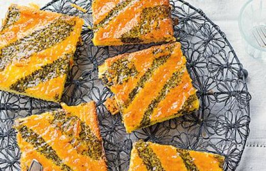 Mohn-Zebraschnitten Zutaten 1 Bio-Orange 4 Eier 250 g Zucker 200 ml Öl 200 ml Orangensaft 300 g Mehl 1 Pck. Backpulver 100 g gemahlener Mohn 5 EL Orangenmarmelade Butter für das Blech 1 Bio-Orange , 4 Eier , 250 g Zucker , 200 ml Öl , 200 ml Or [...]