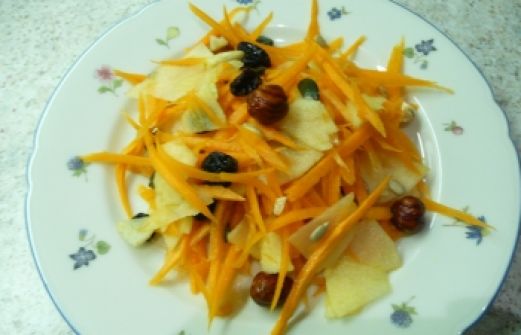 Zutaten für Personen Rezept mit Bild: Apfel-Möhren-Salat da only one x) Bild einstellen 1 Apfel sauer 1 Karotte Zitronensaft 0.5 Tasse Studentfutter Orangensaft Rezept Zubereitung Apfel-Mö [...]