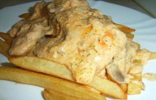 Zutaten für Personen Rezept mit Bild: Lachs-Champigons-Gratin auf Pommes frittis Bild einstellen 100 Gramm Champignons tiefgefroren 250 Gramm Lachs tiefgefroren 200 ml Schlagsahne halbsteif 50 ml Kondensm [...]