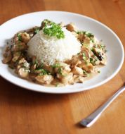 Portionen : 4 1 EL Olivenöl 4 Hähnchenbrustfilets ohne Haut und Knochen 3 EL Vollkornmehl 2 Schalotten, fein gehackt 100 ml Weißwein 100 ml Hühnerbrühe 8 frische Pilze, in Scheiben geschnitten 1 Zweig frischer Estragon 3-4 EL Portwein 3 EL gehackte frische Peter [...]