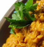 Portionen : 4 1 große Zwiebel 1–2 Knoblauchzehen 10 g frischer Ingwer 400 g kleine neue Kartoffeln 1 kleiner Blumenkohl (etwa 500 g) 1 rote Paprikaschote 4 Tomaten 250 g junger Blattspinat 2 EL Sonnenblumenöl 2 EL milde Currypaste 175 g rote Linsen 1 TL ge [...]
