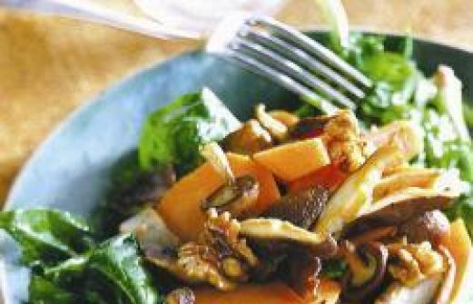Portionen : 4 500 g Süßkartoffeln 50 g Walnusskernhälften 400 g Shiitakepilze 2 Knoblauchzehen 3 EL natives Olivenöl extra Salz, Pfeffer 400 g junger Blattspinat 125 ml Rotweinessig 1 EL Dijon-Senf Zub.: 10 Min. | Kochzeit: 35 Min. | Ruhezeit: 15 Mi [...]